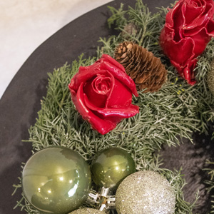 - Verdeel de waxrozen gelijkmatig over de krans.